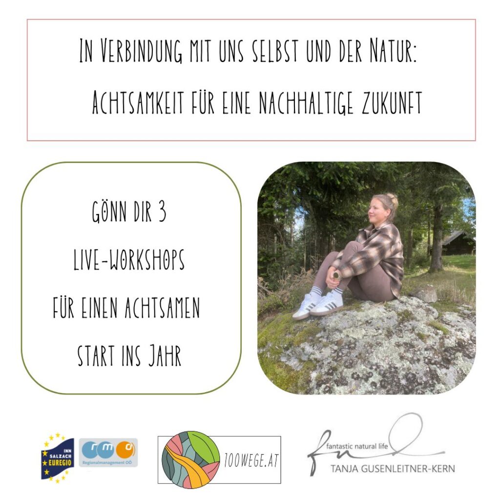 Workshop mit Workbooks zum Thema Achtsamkeit und Nachhaltigkeit, jederzeit in deinem Tempo zum Nachsehen. Aus unserem Netzwerk: Tanja Gusenleitner-Kern